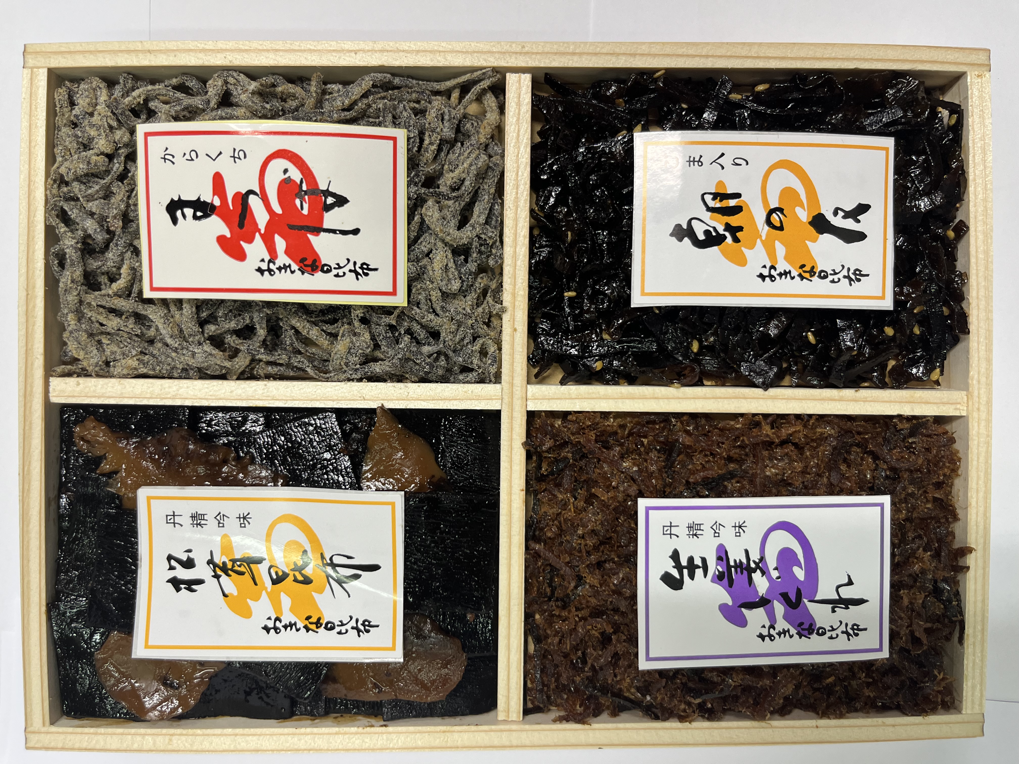 ・松茸昆布、山椒昆布、なにわ乃ちりめん、えぞ冨貴、ふく女、まつば