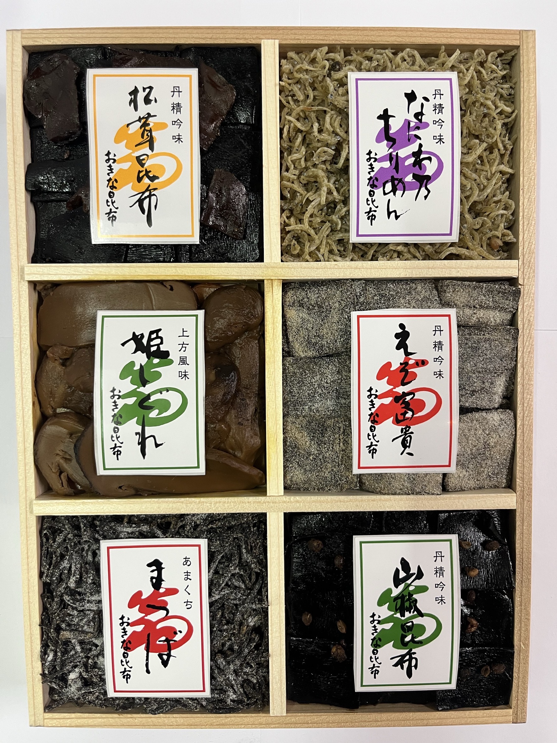 ・松茸昆布、姫しぐれ、山椒昆布、えぞ富貴、なにわ乃ちりめん、まつば